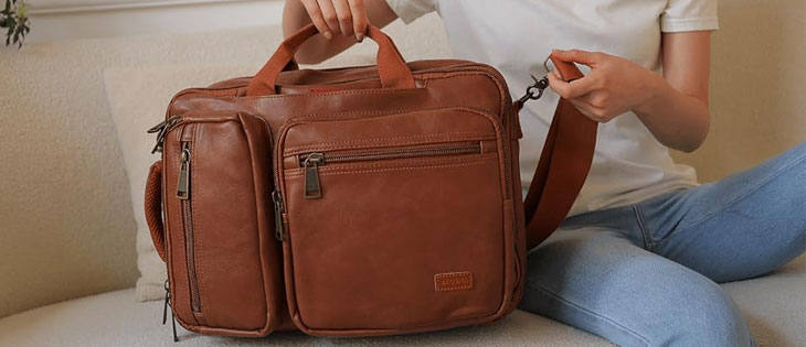 The Baosha Vegan Leather Laptop Backpack Briefcase Hybrid combines style and functionality in one sleek design. Perfect for travel, hiking, or college, this backpack can accommodate a 15.6-inch laptop with ease.